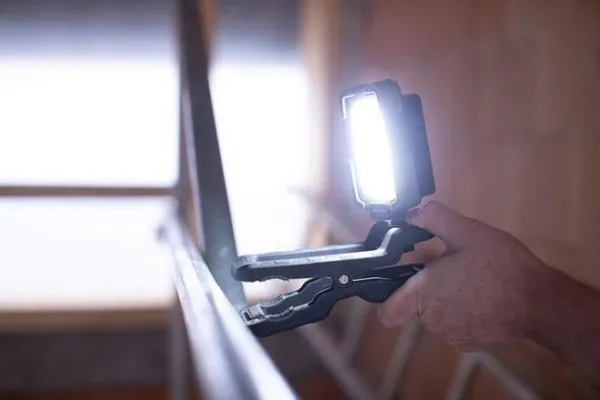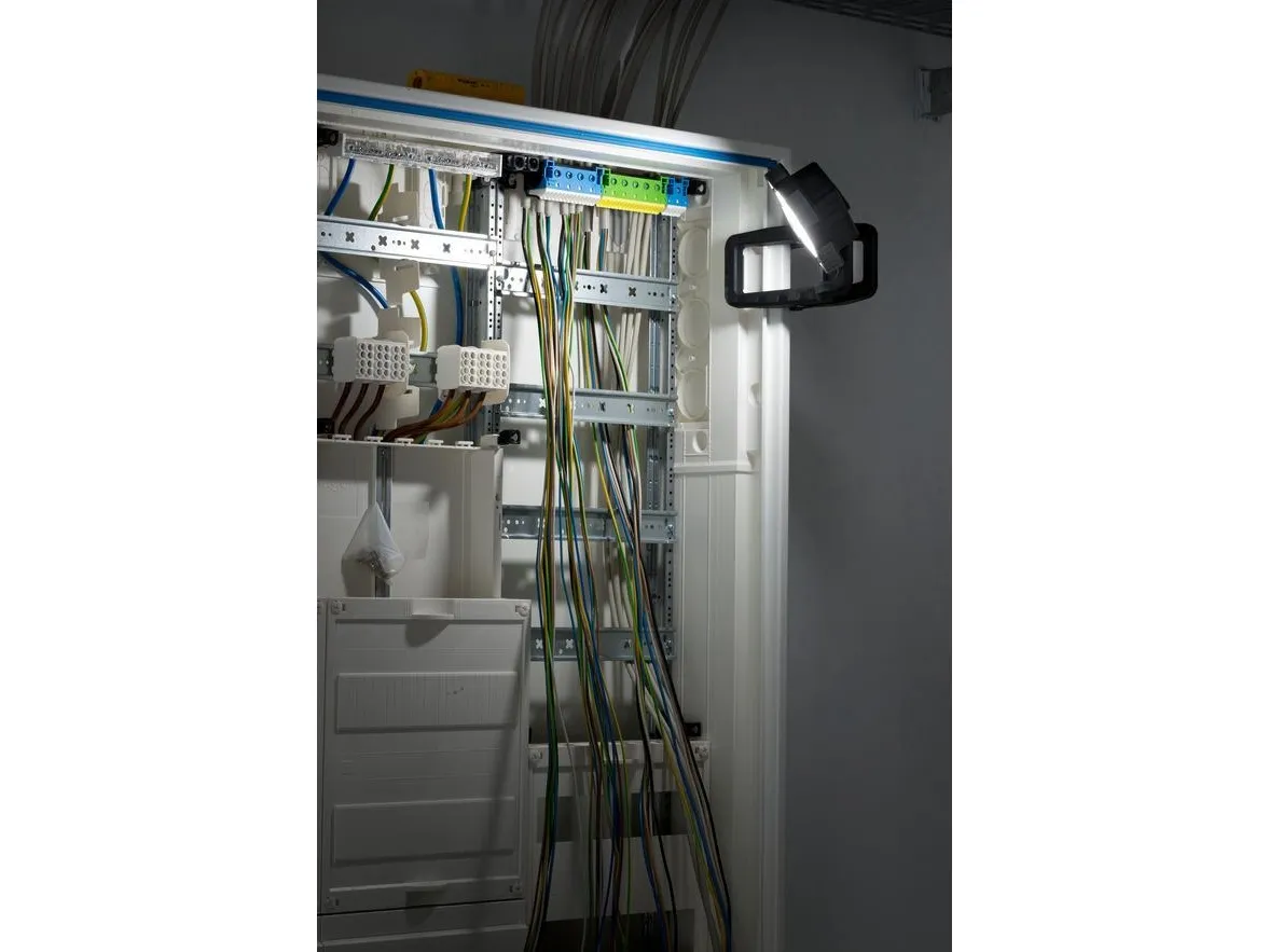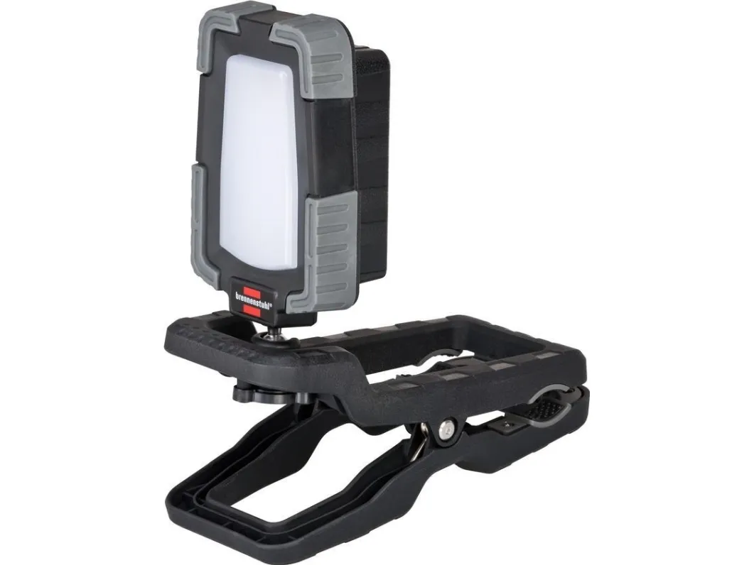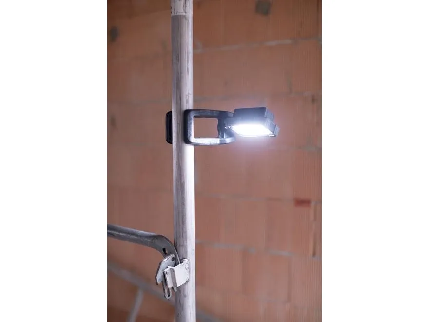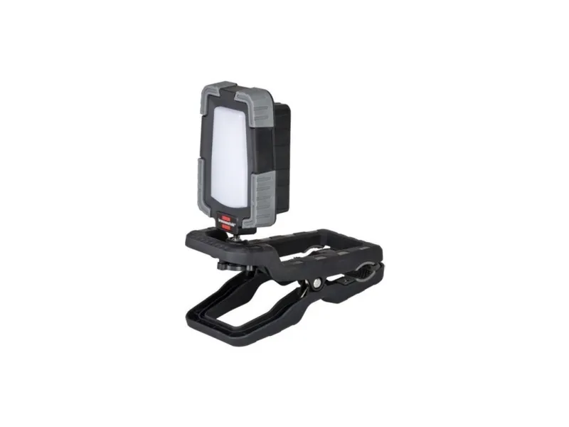 The mobile rechargeable LED work light CL 1050 MA convinces with more flexibility and functions for the versatile work of home and craftsmen in workshops or on assembly. Thanks to the stable clip system (clamping width up to 55mm), the compact LED work light can be attached to work surfaces, pipes, plates, etc. without much effort and thus offers a bright, glare-free light and free hands when working. The three switching levels (100% / 50 % / 25 %) allow individually adapted illumination. The break- and impact-resistant plastic housing protects the LED spotlight from damage and offers IP65 protection (dustproof & jet-proof). Thanks to the ball bearing and the integrated ball joint, the tilt angle of the LED construction spotlight can be flexibly adjusted by almost 360° and individually aligned in all directions. In addition, the work light equipped with SMD LEDs convinces with the following features: