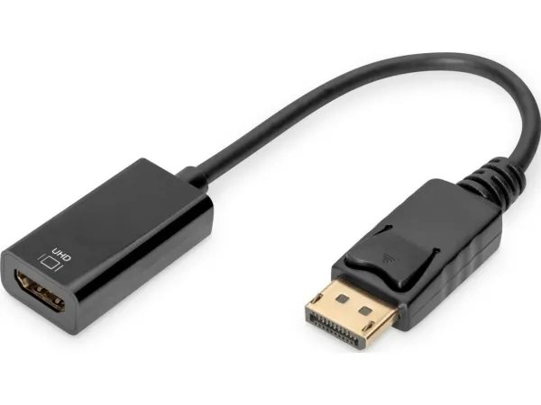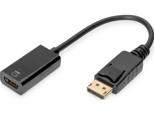 DIGITUS - Videosovitin - DisplayPort uros - HDMI naaras - 20 cm - kaksoissuojattu - musta - aktiivinen, 4K(4096 x 2160) -tuki