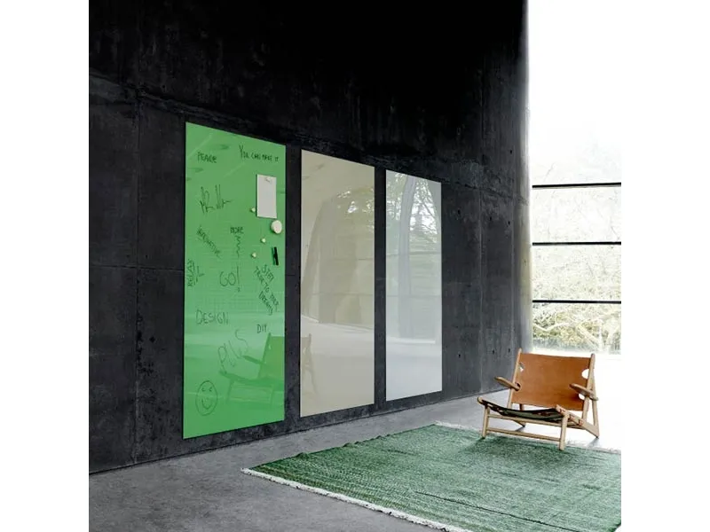 Mood Wall on magneettinen lasitaulu. Taulu on valmistettu optisesta lasista, jonka rautapitoisuus on erittäin alhainen, mikä antaa täysin kirkkaan lasin ilman vihreitä sävyjä. Kirkas lasi antaa kirkkautta ja väritarkkuutta, jota ei tavallisella lasilla saavuteta. Taulun koko (s x k) 1500 x 500 mm Magneettinen Piilotettu seinäkiinnike Syvyys seinästä 12 mm Optista lasia Mood Wall -lasitaulu on saatavana tilauksesta yhteensä 24 värissä. Kynähylly ei sisälly.
