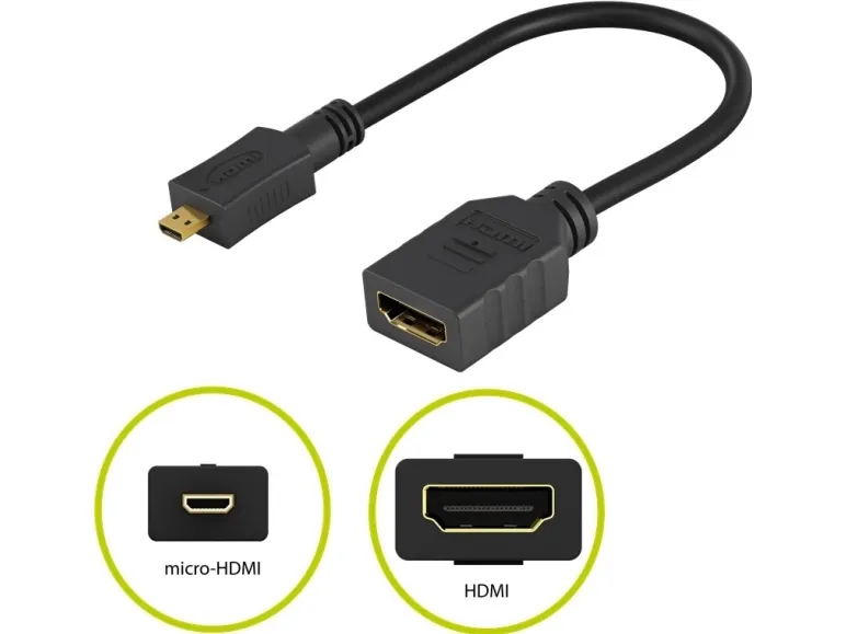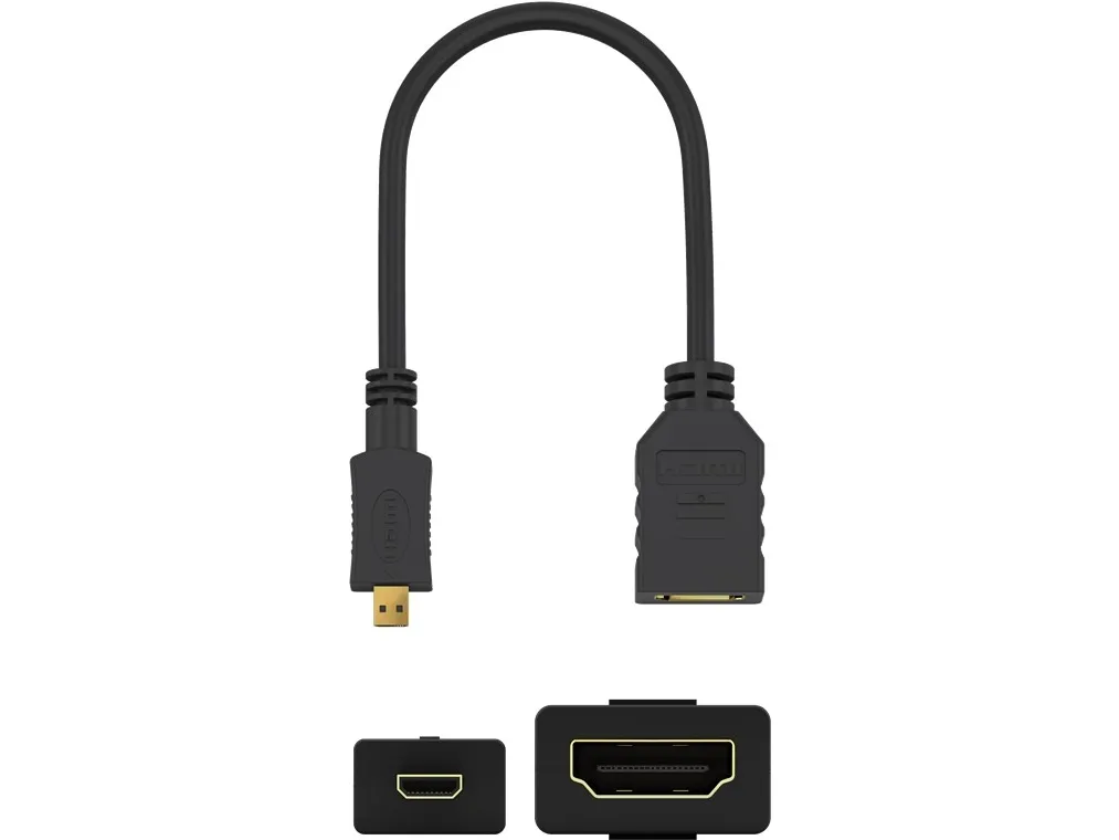 Forlænger et HDMI™-kabel og er velegnet til tilslutning af enheder med HDMI™-stik (Micro), f.eks. Raspberry Pi, GoPro-actionkamera, tablet samt overførsel fra bærbar computer til