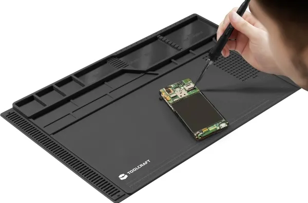 TOOLCRAFT 2362826 Lämmönkestävä pöytätyyny, juottotyyny, silikonityyny (L x S x K) 550 x 350 x 15 mm)