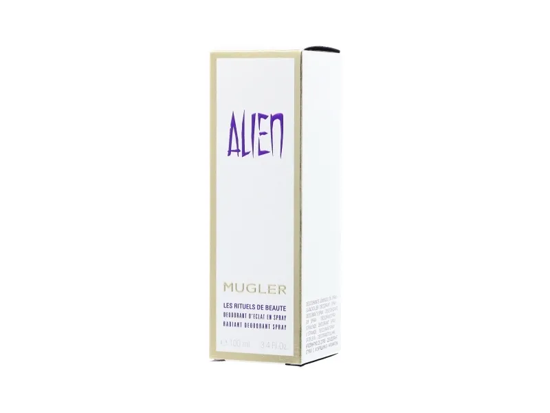 The radiant essence of Alien Eau de Parfum is available as a body cream with Alien Radiant Spray Deodorant. Alien Spray Deodorant invites you to rediscover the luminous and mysterious scents of your favorite Eau de Parfum every day. Alien Radiant Deodorant softens, protects and perfumes your skin throughout the day thanks to its long-lasting active ingredient. A discreet solar fragrance and a radiant force envelop you with delicacy from morning until evening.
