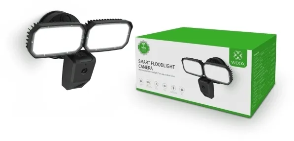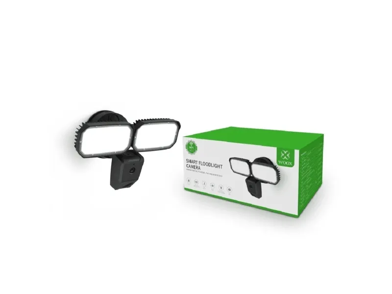 Meet the Woox Smart Floodlight Camera designed for maximum security. This innovative device combines 1080P high-definition imaging with ultra-bright LED lighting and a built-in siren for effective all-around security coverage. Integrated capabilities for two-way communication and remote control via smartphone make it the ultimate home and office protection solution. It also works seamlessly with Google Home and Amazon Alexa devices.Full HD image quality and advanced opticsTwin 3000 lumen LED lightsBuilt-in 110-decibel siren for instant threat alertsTwo-way communication and remote control functionalityCompatibility with Google Home and Amazon AlexaFull HD image quality and advanced optics The Woox Smart Floodlight Camera boasts a 1080P high-definition camera paired with a 120-degree wide-angle lens offering sharp detailed images and wide coverage. This advanced optic system ensures you never miss a thing turning every corner of your house into a security checkpoint. Twin 3000 lumen LED lights Outfitted with two 3000-lumen LED lights this smart floodlight camera easily illuminates expansive areas. With manual or automatic light activation options it ensures optimal visibility and a deterrent effect against potential intruders. Built-in 110-decibel siren for instant threat alerts Want an extra layer of security? The integrated 110-decibel siren provides a powerful auditory alert during a security breach. Be instantly notified with a push message on your phone view the live stream and decide whether to activate the alarm. Two-way communication and remote control functionality With a built-in microphone and speaker the Woox Smart Floodlight Camera facilitates a clear two-way intercom. Communicate with visitors or potential intruders from the safety of your phone. Access and control the camera functions from any location anytime. Compatibility with Google Home and Amazon Alexa Featuring seamless integration with Google Home and Amazon Alexa this smart floodlight camera not only bolsters your security but also augments your smart home system. Present the camera stream directly to your Google Nest Hub or Amazon Echo Show enhancing your control over home security. PACKAGE INCLUDES:1x R4076 Smart Floodlight Camera1x Screws and 3M tape for attached1x Multi-language user manualPRODUCT SPECIFICATIONS:Image Quality: 1080P High-DefinitionLED Lights: 2x 3000 lumenAudio: Two-way communicationAlarm Siren: Built-in 110 decibelCompatibility: Google Home and Amazon AlexaSensor: Wide range PIR sensor motion detectionNight Vision: Yes up to 10 metersApp Control: YesField Of Application: Indoor and OutdoorPower supply: AC 220-240V 50HzPower consumption: 25WStorage: support SD card 128G Max. (not included)Works with: Echo Show and Google Nest Hub.Lighting Angle: 95°Color temperature:5000KWi-Fi frequency: IEEE 802.11b/g/n 2.4GHz only.Max. Transmission Power: 15.59 dBmWorking temperature: -10?-40?Working humidity: ?95%RHDimension: 283x180x173mmNet weight: 350gram