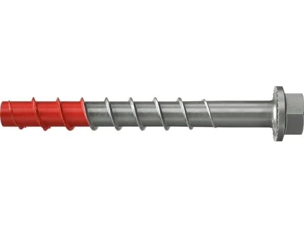 The fischer concrete screw UltraCut FBS II US R, with the specially hardened red tip is a high-performance anchoring solution for fast installation. The concrete screw with the pressed washer is ideal for applications outside or in damp areas. The European Technical Approval for cracked concrete and non-cracked concrete as well as for seismic loads and classification into fire resistance class R 120 guarantee even more safety. The saw tooth geometry enables a quick and easy installation. No drill hole cleaning is required for installation in ceilings and floors. The expansion-free anchorage (undercut) ensures low edge and axial spacings.