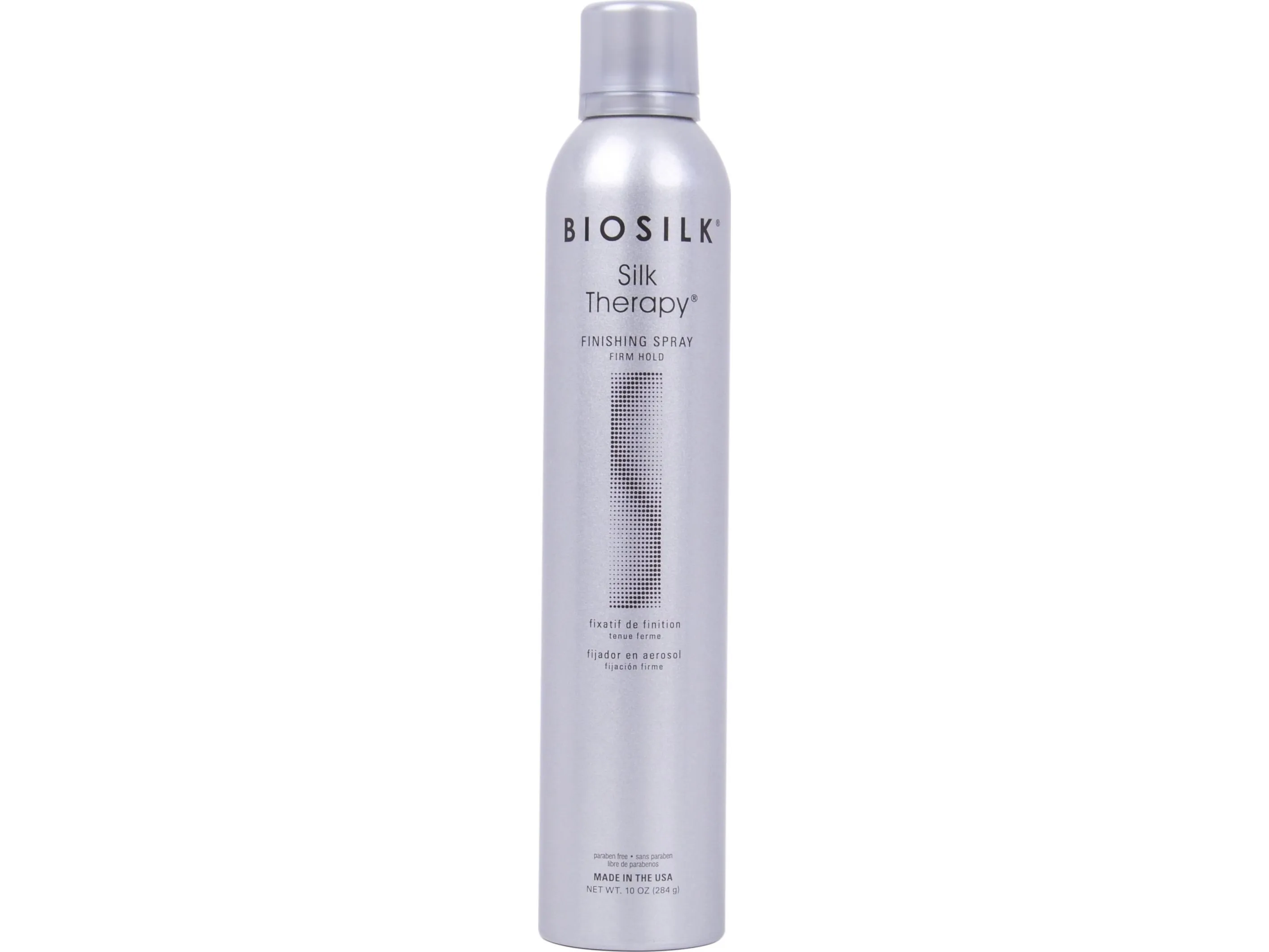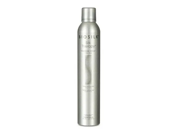 BioSilk Silk Therapy Finishing Spray Natural Hold Luonnollisen pidon antava viimeistelysuihke, joka sisältää silkkiä ja luonnollisia uutteita, jotka hoitavat ja lisäävät kiiltoa hiuksiin Käyttö Pidä kanisteria 30 cm:n etäisyydellä ja suihkuta tasaisesti koko hiuksiin