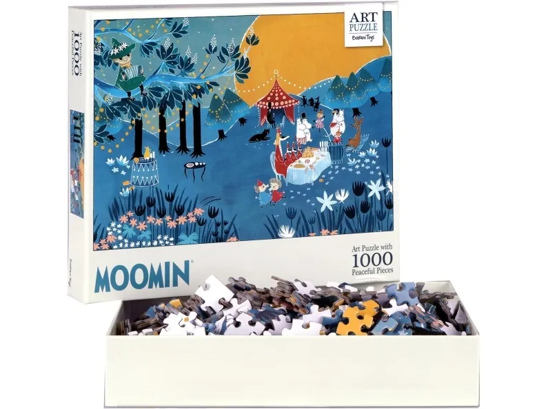 Palapelissä on värikkäitä kuvia Mumipeikosta ja ystävistä Mumilaaksosta, jotka juhlivat kauniissa auringonlaskussa. Barbo Toys -tuotteet suunnitellaan huolellisesti Tanskassa, ja niissä keskitytään kestävään kehitykseen ja laadukkaisiin materiaaleihin. Palapeli sisältää 1000 palaa