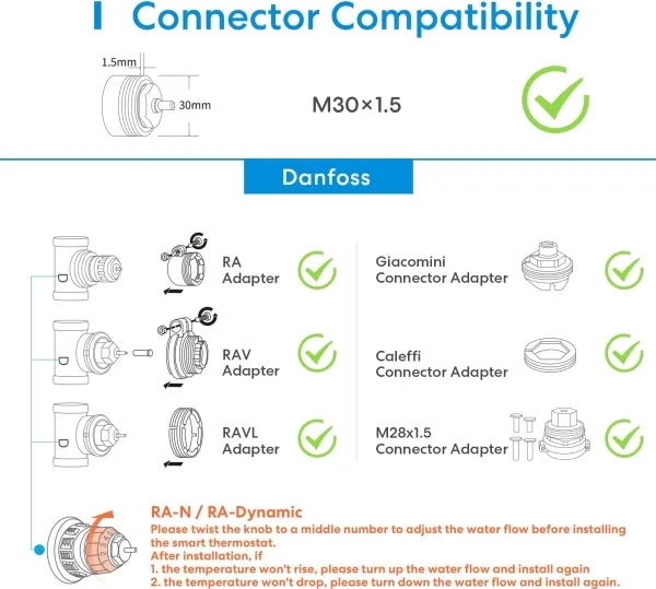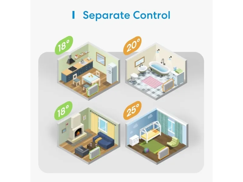 Discover the convenience of smart heating with the Meross radiator thermostat. This device transforms your home into a haven of comfort and efficiency. Equipped with 'open window' detection, it automatically adjusts your heating to save energy. The starter kit comes with a Wi-Fi hub, making it compatible with Alexa, Google Assistant, and Siri for voice-controlled adjustments. Its wireless connectivity ensures smooth integration into your home automation system, offering both battery and power adapter options for continuous operation. Embrace a smarter, more comfortable home environment with this essential addition to your integrated systems and automation.