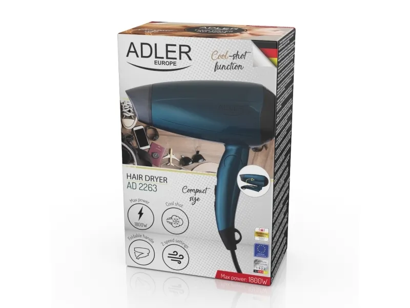 With our hair dryer Adler AD 2266 with the power of 1800W you can dry you hair faster and more comfortable than ever! With the help of a concentrator, hot air flow can be directed only where you need it.The dryer is equipped with two levels of power, is also very light and easy to use and store. Thanks to there advantages our dryer will be your practical friend during doing a hairstyle!