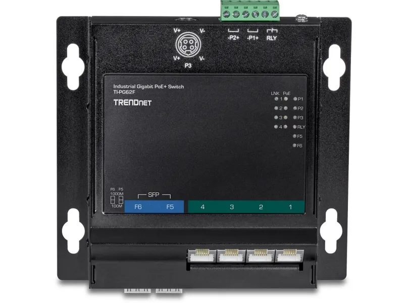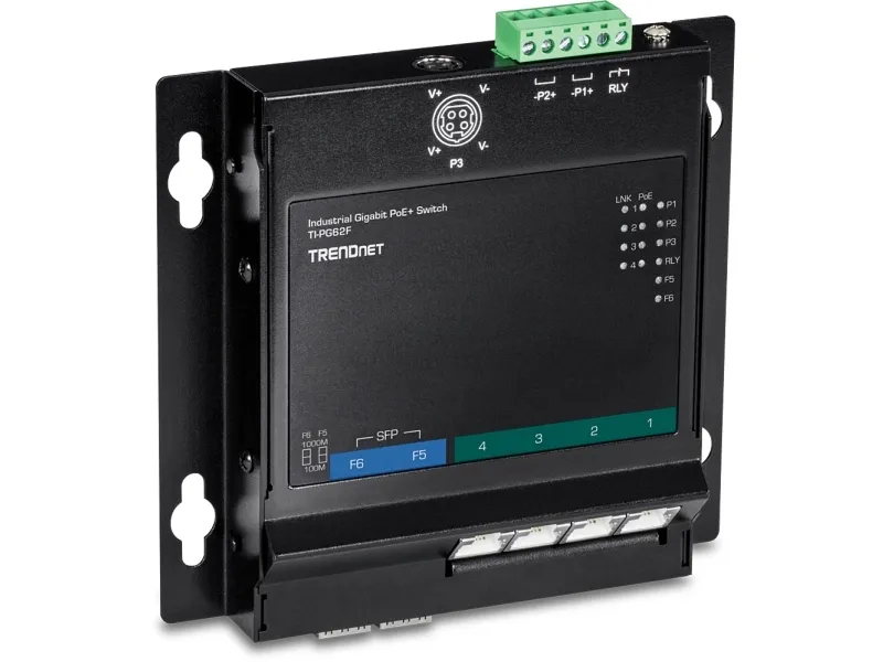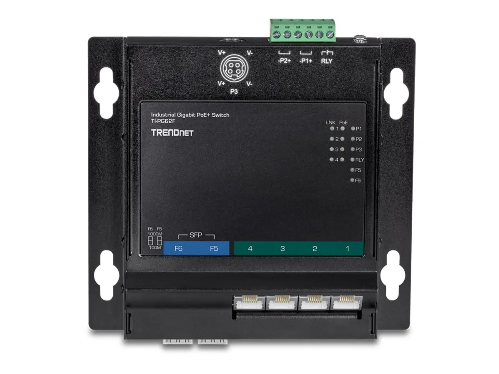 TRENDnet's Industrial Gigabit PoE+ Wall-Mounted Front Access Switch Series is well suited for IP surveillance, IoT, and automation networks for homes and businesses. These hardened industrial gigabit flat switches provide front access to ports and power interfaces for easier installation. The flat and compact size make them ideal for cabinet installations where space is limited. Each hardened industrial front access switch features gigabit PoE+ ports for connecting devices, such as wireless access points, IP cameras, and IoT appliances. These hardened front access switches come equipped with an IP30 rated metal enclosure, designed to withstand a high degree of vibration and shock, while operating within a wide temperature range of -40° - 75°C (-40° - 167°F) for industrial environments.