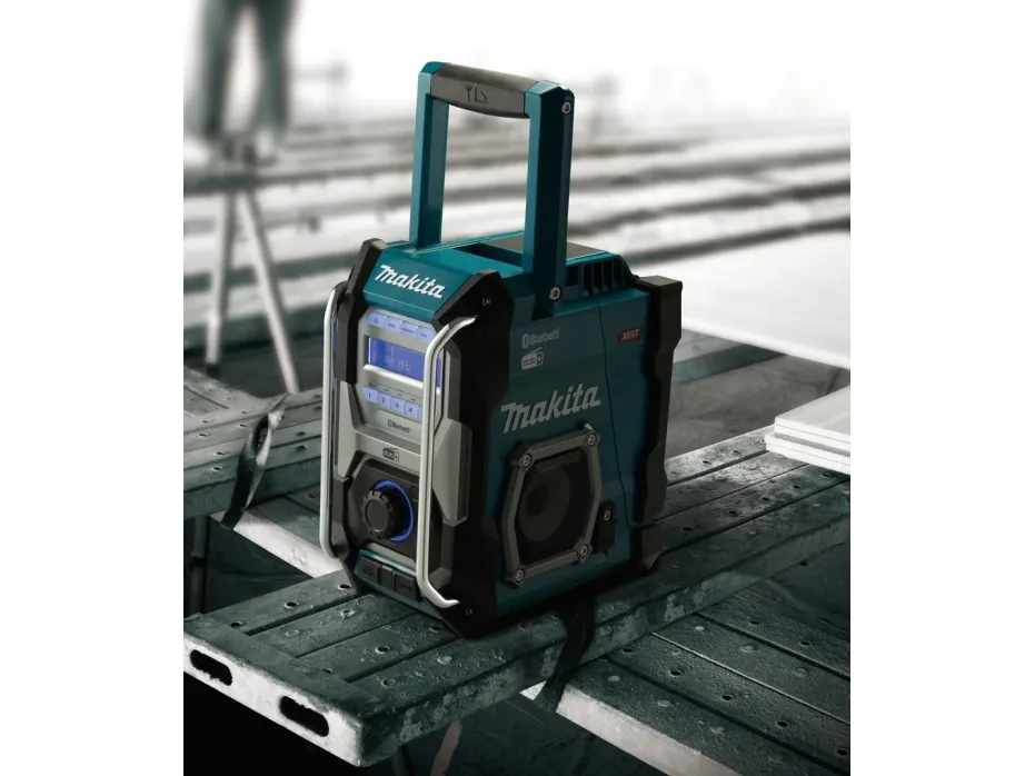 Cordless construction site radio with protection against dust and splash water on all sides (IP64) and two powerful 89 mm loudspeakers. Runs on all CXT 12 V max., LXT 18 V and XGT 40 V max. (XGT up to max. 4.0 Ah) battery packs or the mains adapter supplied. With DAB+/FM reception, AUX-in, Bluetooth and USB connection with 2.4 A output. Five presets each for DAB+/FM.