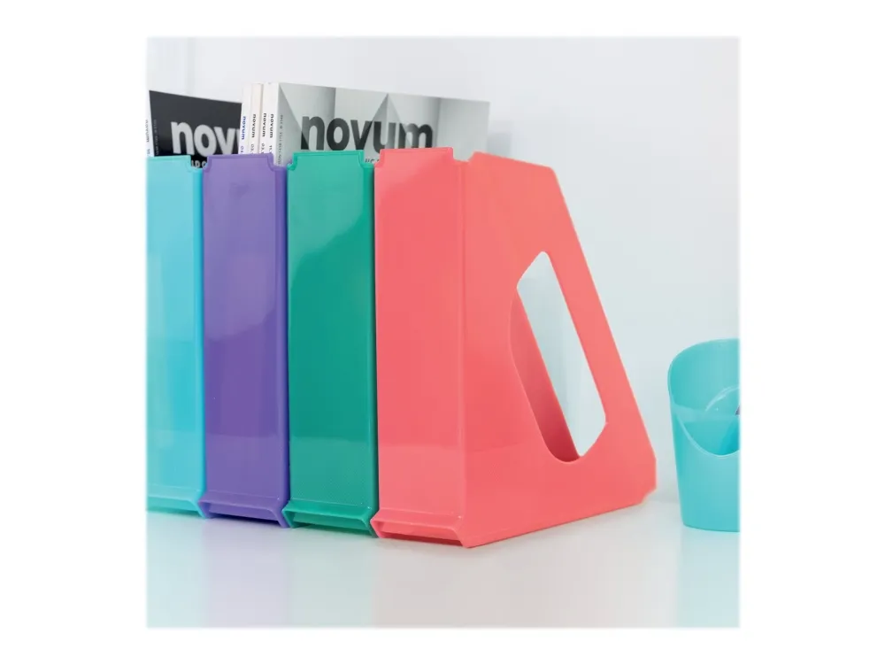 The Esselte Colour'Breeze magazine file is a practical and stylish solution for anyone looking to streamline their filing and storage needs. Its support for A4 (210 x 297 mm) documents makes it an ideal choice for organizing papers, magazines, and other documents. The product's durable plastic construction not only ensures longevity but also protects your important documents from wear and tear. Additionally, its transparent design allows for quick content identification, further enhancing your organizational efficiency. With dimensions of 256 x 260 mm, it provides ample storage without taking up excessive space, making it a perfect addition to any home or office environment.