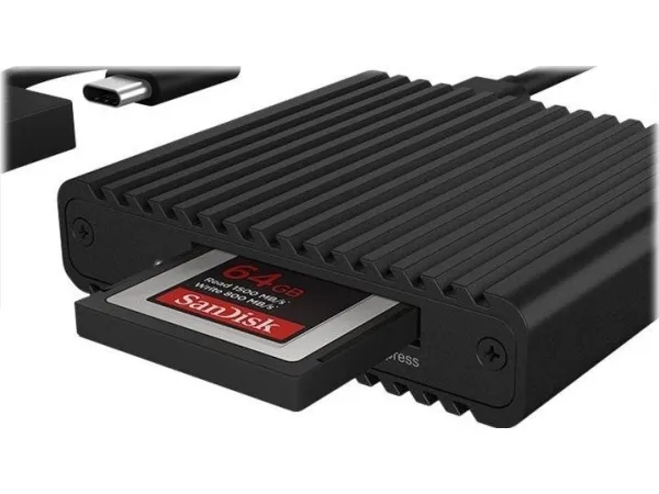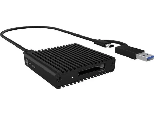 The IB-CR404-C31 is a card reader for CFexpress 2.0 Type-B memory cards. With USB 3.2 (Gen 2) and thus up to 10 Gbit/s, it can read and write to CFexpress 2.0 memory cards with NVMe protocol at blazing speed. The USB combination cable ensures broad compatibility with USB Type-C and Type-A connections. The high-quality housing made of solid aluminum is able to optimally dissipate the heat generated by the memory card through the integrated cooling fins.