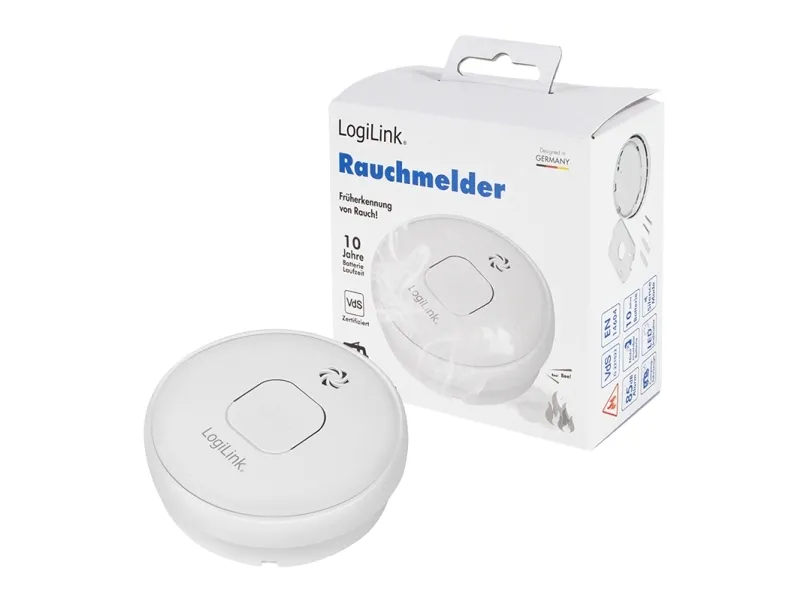 LogiLink SC0016 - røgalarmKnap til enkel funktionstest og til at slå til en lydløsIndbygget litiumbatteri, ca. 10 års batterilevetidMaksimal beskyttelse og højeste sikkerhedSensortype: FotoelektriskMed Silent-tilstanden kan du undgå falske alarmer gennem madlavning eller brusebadMeget præcis og reaktionshurtigLED-displayFarve: Hvid. Gør dit liv sikrere - denne røgalarm med 3 V-Lithium-batteri har en fotoelektrisk sensor, som er optimeret til også at registrere langsomt indeverdenende brande. Alarmen har desuden en høj 85-dB-alarm, en enkel monteringsholder, en test- /mute-knap og et signal, der viser afslutningen af batterilevetiden, så du ved, hvornår du skal udskifte batteriet. Med henblik på en maksimal beskyttelse og den højeste sikkerhed kan du stole på røgalarmen fra LogiLink, når det gælder om at redde det vigtigste i livet.