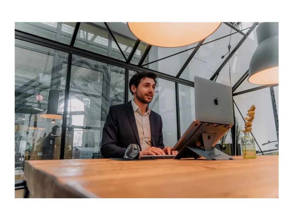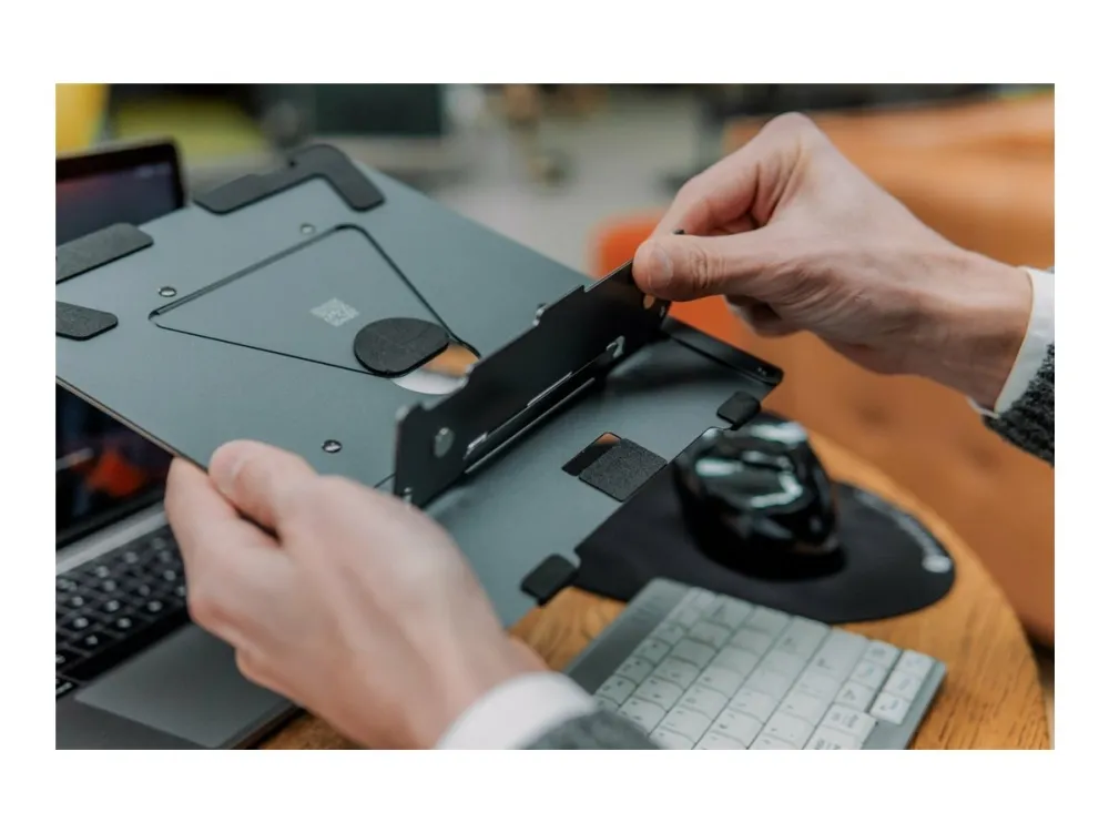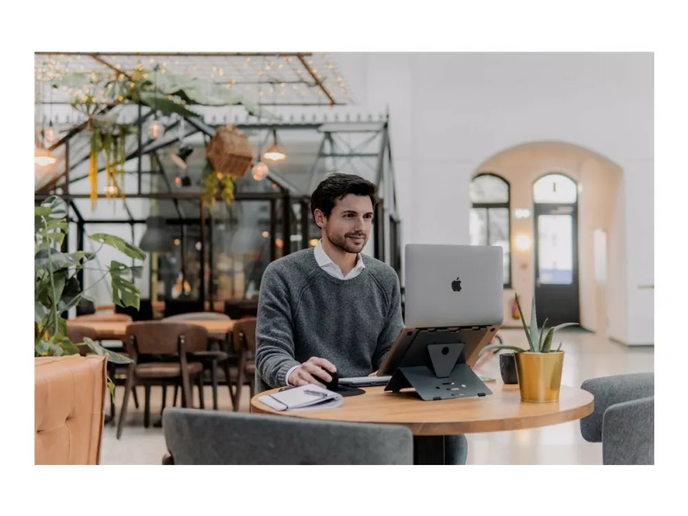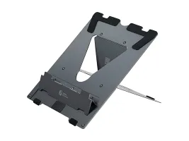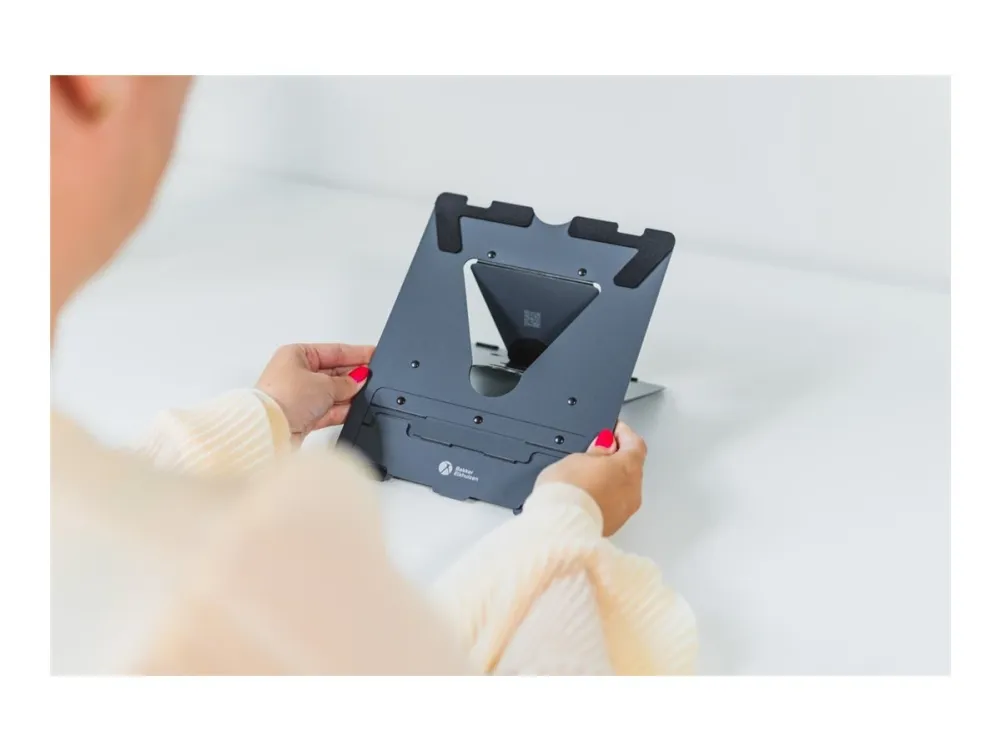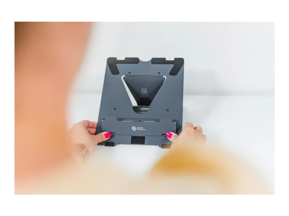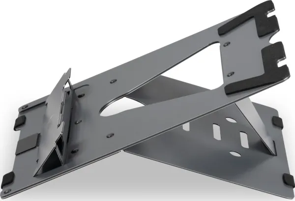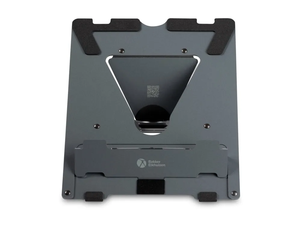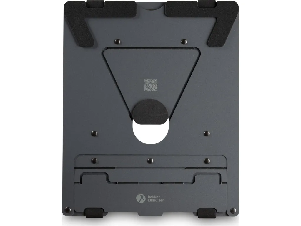 The Bakker Elkhuizen Ergo-Q 160 is a notebook and tablet stand designed for comfort and ergonomics. Constructed from lightweight aluminum, this stand provides durability and stability while maintaining a sleek appearance. With 5 height adjusting levels, users can easily find the angle for their device, ensuring better posture and reducing strain during extended use. It accommodates a wide range of notebook sizes from 11 inches to 17 inches, making it a versatile accessory for home and office environments.