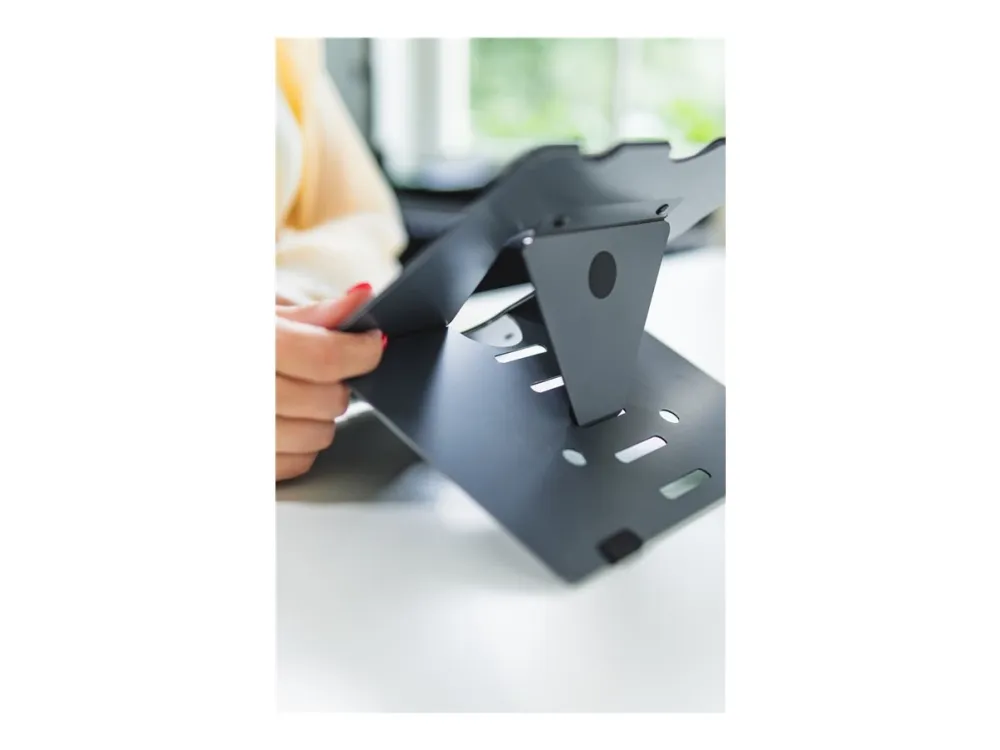 BakkerElkhuizen Ergo-Q 160, Kannettavan tietokoneen teline, Musta, Tummanharmaa, Alumiini, Kumi, Terästä, 25,4 cm (10"), 43,2 cm (17"), 110 - 185 mm
