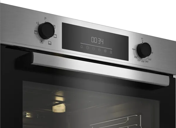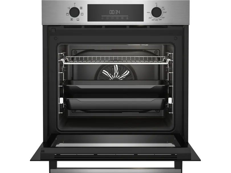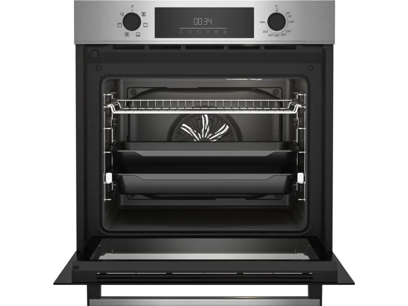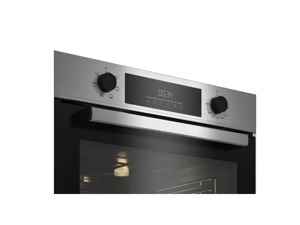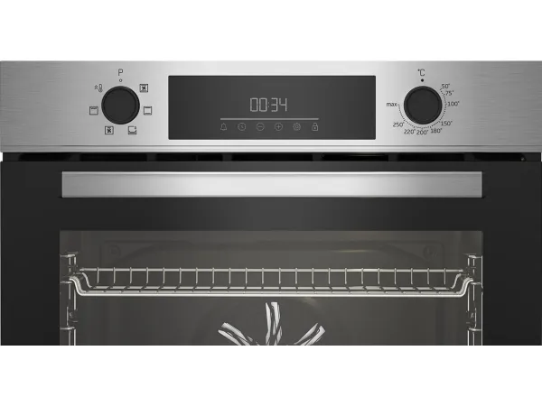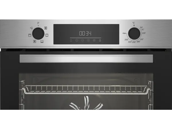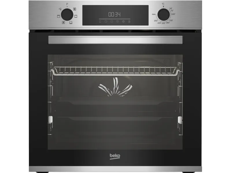 Beko BBIE123001XD. Oven size: Medium, Oven type: Electric, Total oven(s) interior capacity: 72 L. Appliance placement: Built-in, Product colour: Stainless steel, Control type: Rotary, Touch. Clock type: Electronic. Energy consumption (conventional): 0.88 kWh, Energy consumption (forced convection): 0.81 kWh, Energy efficiency scale: A+++ to D. Lamp type: Halogen