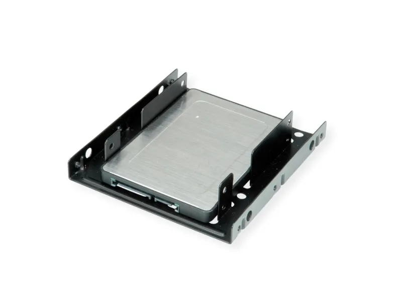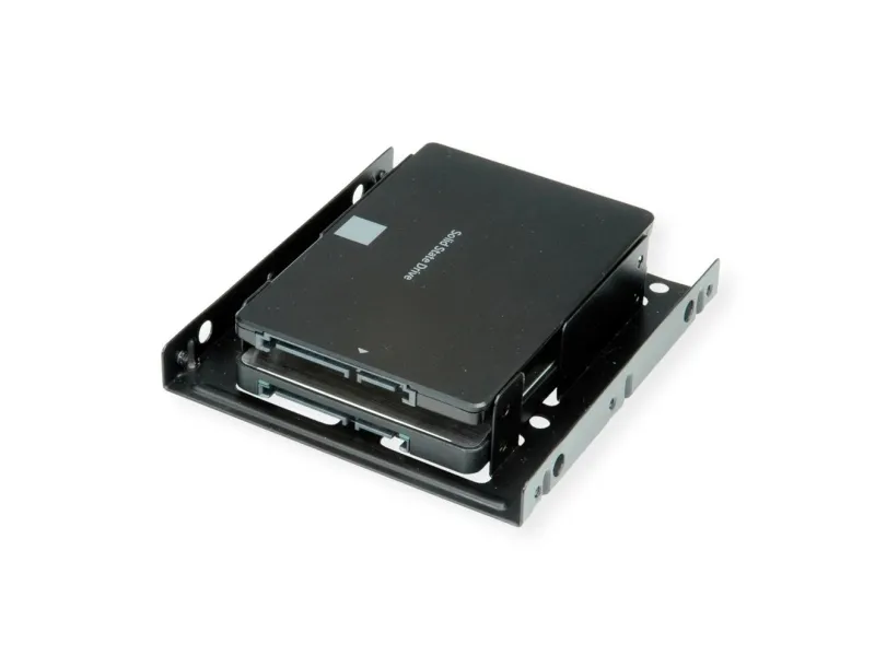 For installation of two 2.5 inch HDDs/SSDs in a 3.5 inch mounting bay Sturdy, black metal frame Mounting screws included in scope of delivery