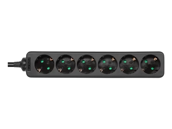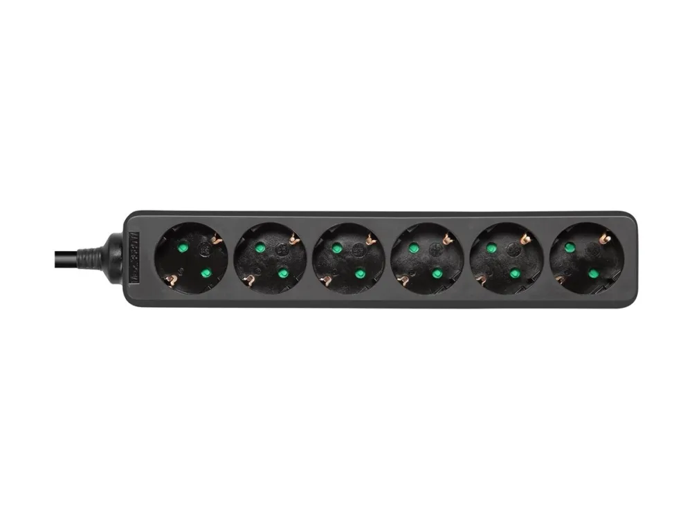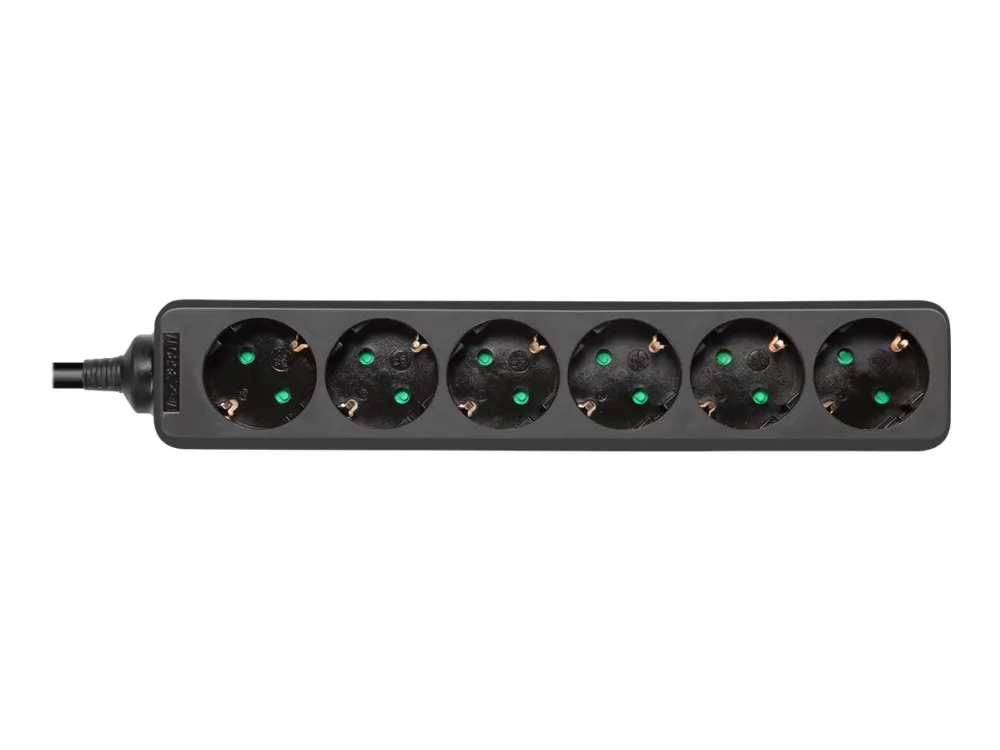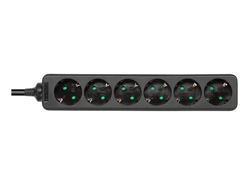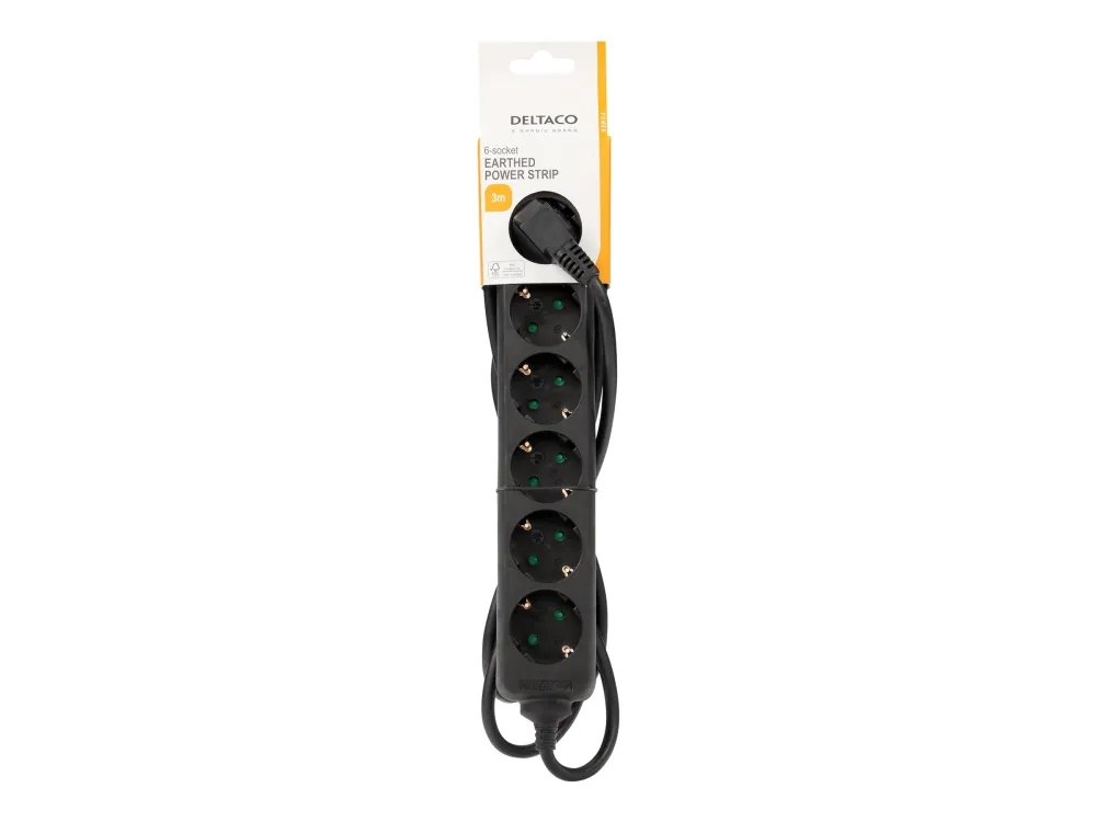 Deltaco GT-0621, 3 m, 6 AC-pistorasia(a), Sisätila, Tyyppi F, Type F (CEE 7/4), Kulmikas