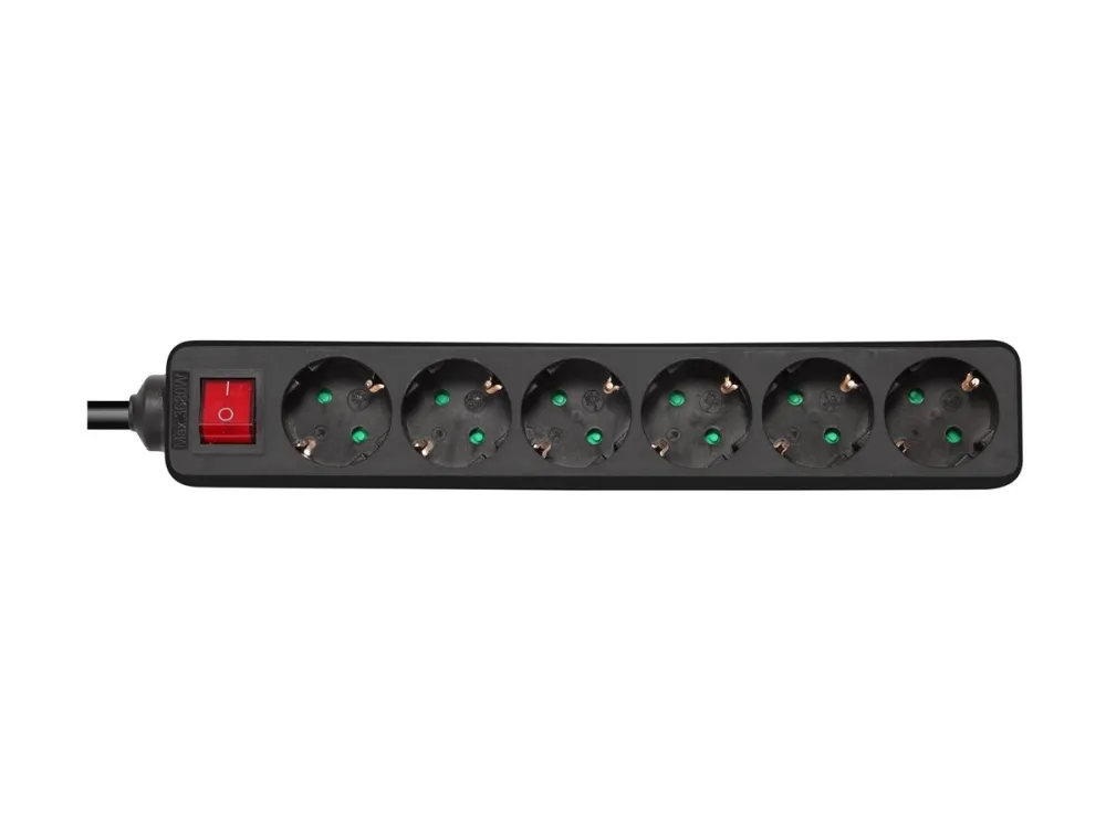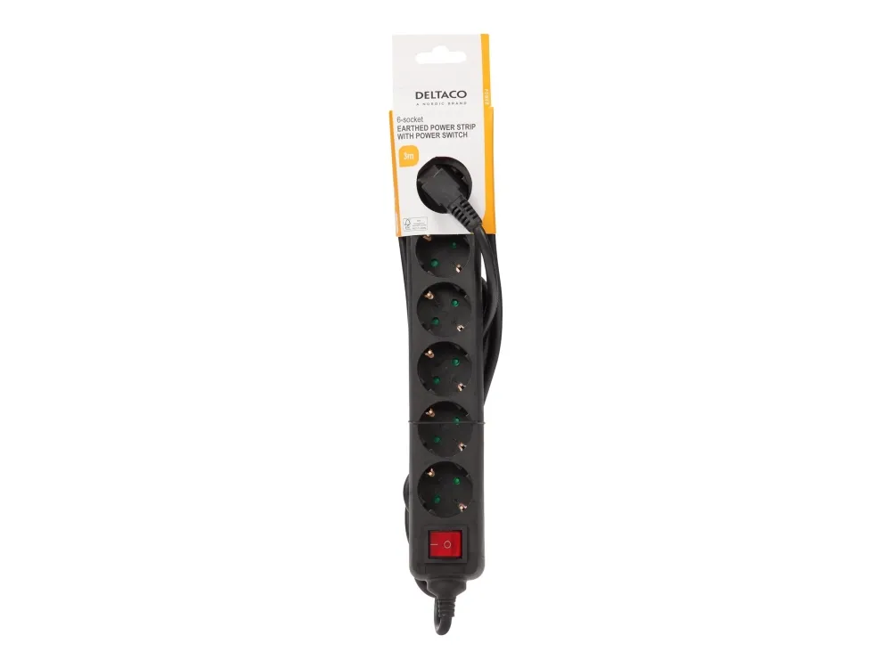 Deltaco GT-0661, 3 m, 6 AC-pistorasia(a), Sisätila, Tyyppi F, Type F (CEE 7/4), Kulmikas