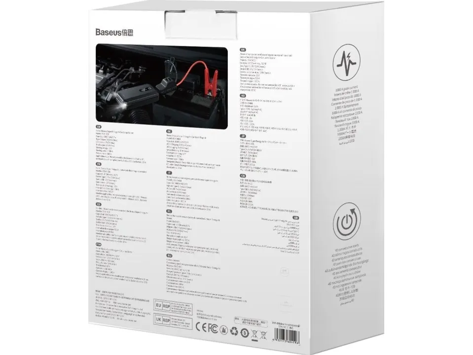 Do you need a reliable starting device that will make you independent from roadside assistance specialists and start your car on your own in the cold? A discharged battery does not have to be a problem if you have your own Baseus starter. It is a device with excellent parameters, reaching even 1000A of peak current. Strong enough to allow you to start the car in an emergency up to 50 times after charging! Efficient, safe, handy and at the same time intuitive to use starter should be in every garage!Baseus CGNL020101. Output current: 2.4 A, Product colour: Black, Starting current: 500 A. Power source type: USB, DC input voltage: 5 V, USB output current: 2.4 A. Weight: 470 g