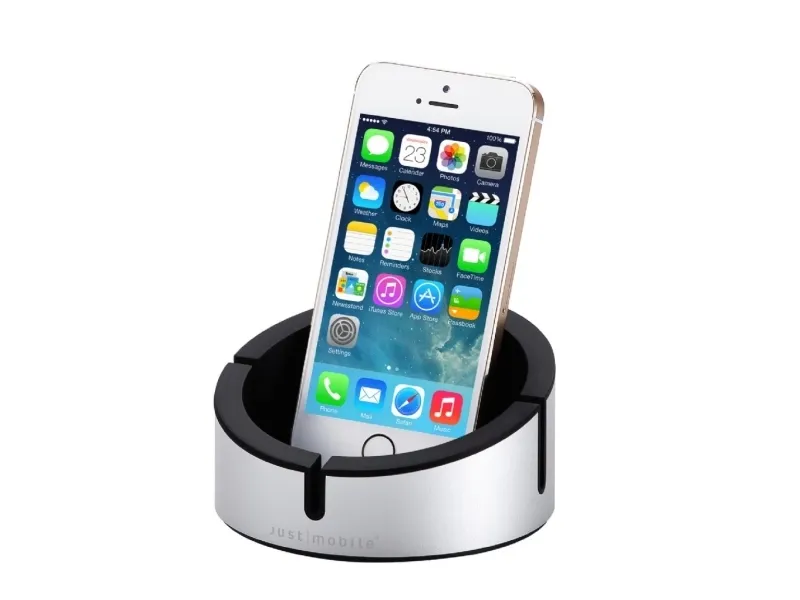 Just Mobile AluCup Grande™ is the multi-purpose desktop stand for smartphones and tablets. Sculpted from a single piece of high-grade aluminum inset with soft rubber, AluCup Grande™ provides a rock-solid upright stand when you sit your smartphone inside it. And thanks to its high-friction rubberized edges, it doubles as a stylish reclining pedestal for smartphones or tablets with space for cable storage within.