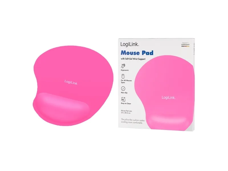 With the LogiLink Gel Mouse Pad, you can now relax your hand at work. Thanks to the gel to fit the surface exactly on your wrist, so pain after too long working with the mouse is belonging to the past. On the bottom of the pad is a surface that is slip-resistant. It is compatible with all available mouse types such as ball, optical and laser mouse.\n\n- Mousepad with wrist rest.\n- Strong adhesive bottom for optimal steady.\n- Materials: Natural rubber/foam/gel.\n- Material thickness: 3 mm.\n- Wrist rest with gel.\n- Gentle on wrist.\n- ENcrease symptoms of fatique.\n- Improves mouse precision and speed.\n- Optimal game performance.\n- Supports all mouse types (ball, optical, laser).