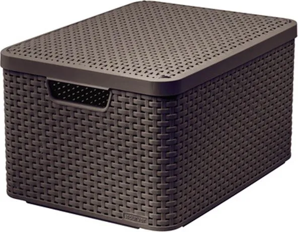 Product type- Storage boxes with lid. Brand- Curver. Article- 205861. Length- 44.5 cm. Width- 33 cm. Height- 24.8 cm. Colour- Brown. Material- Plastic. Mandatory warranty- 24 mo.
