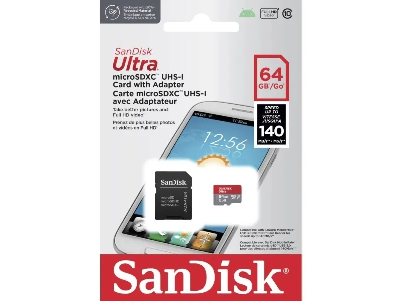 SanDisk Ultra - Flash-muistikortti (microSDXC-SD-sovitin mukana) - 64 GB