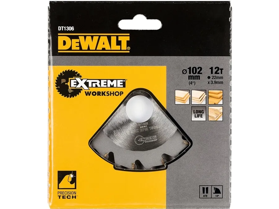 DeWALT ‎DT1306-QZ. Blade diameter: 10.2 cm, Bore size: 2.2 cm, Thickness: 4 mm. Package weight: 171 g. Quantity per pack: 1 pc(s)