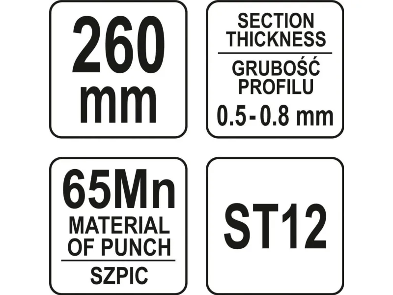 Yato YT-51312, Terästä, Termoplastinen kumi (TPR), 260 mm