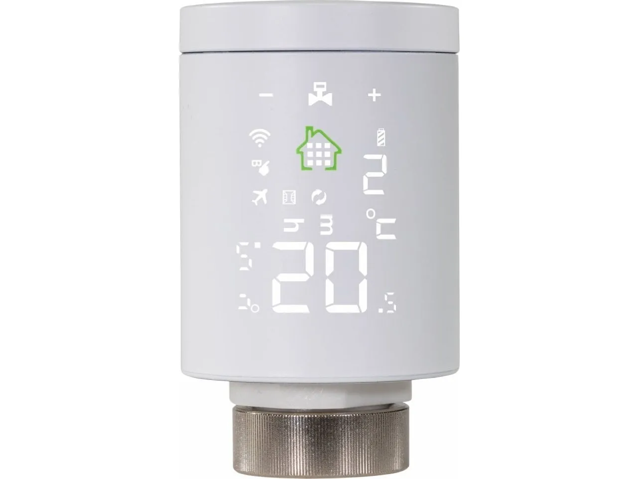 Smart wireless thermostatic radiator valve, set contains two pieces + central Wi-Fi unit, Android/iOS app control in Czech, paper-white LED touch display, compatible with Google Assistant and Amazon Alexa, daily and weekly planning, connection to M30 thread and compatible with RA, RAV, and RAVL valves.Evolveo Ptero EVORVM30SP. Product colour: White, Material: Plastic, Control type: Buttons. Display type: LED. Battery type: AA. Diameter: 5.3 cm, Height: 89.5 mm. Number of products included: 2 pc(s), Adapters included: M30, RA, RAV