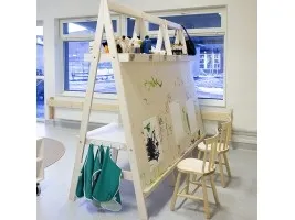 Zinket maler staffeli i hvidbejdset birk. Fås i 2 modeller: 2 eller 3 moduler. Maler staffeliet har en skå side, som kan bruges til at male på og på den anden side er der en bordplade med praktisk opbevaringsplads øverst.