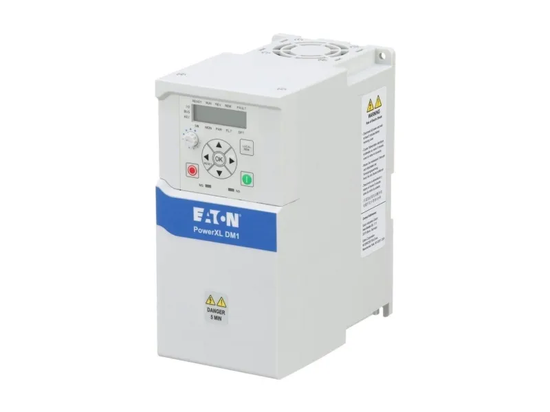 FrekvensomformerKræver større ydeevne med beskedent pladsbehovEatonsPowerXL DM1 mikrodrev med variabel frekvens er udviklet til nutidens krævende kommercielle og maskin-OEM-anvendelser. Med en førende energieffektivitetsalgoritme, en høj kortslutningsstrøm og et robust design giver DM1 kunden en øget effektivitet, sikkerhed og pålidelighed samt funktioner, der forbedrer integration og brugervenlighed.Kernefunktioner af PowerXL DM1 mikro-HDD'erBrugervenlighed: Easy Startup Wizard, PC-Tool-software, integreret Bluetooth, fire integrerede programmer, diagnose, Lokal-/fjernbetjeningsknap, aftageligt tastatur med kopierings-/indføjningsfunktionPladsbesparende: Kompakt størrelse, NEMA 1-Kit-funktion, integreret Ethernet og seriel kommunikation og i/OCertificeringer: UL, CE, cUL, RoHS, C-Tick, TÜVEnergioptimering: Permanent magnet-motorstyring, aktiv energistyringsalgoritme, indgangsspændingsbeskyttelse, indbygget EMI/RFI-filter (valgfrit)Pålidelighed: Beregnet til høj overbelastning (CT) og lav over