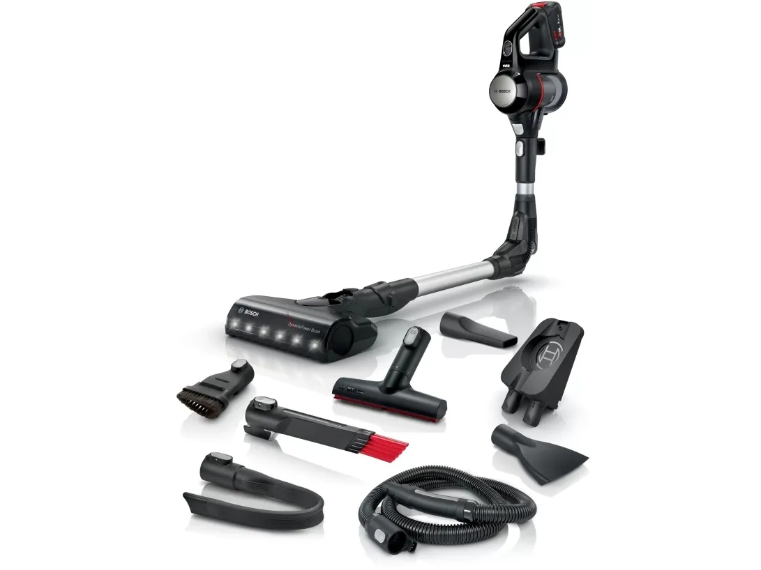 Bosch BCS711PET. Product type: Stick vacuum, Dust container type: Bagless, Product colour: Black, Red. Cleaning type: Dry, Dirt separating method: Filtering, Cleaning surfaces: Bare floor, Carpet, Hard floor, Stair steps, Tile, Upholstery. Power control: Electronic. Power source: Battery, Battery voltage: 18 V, Runtime: 40 min. Package width: 800 mm, Package depth: 300 mm, Package height: 195 mm