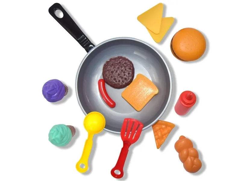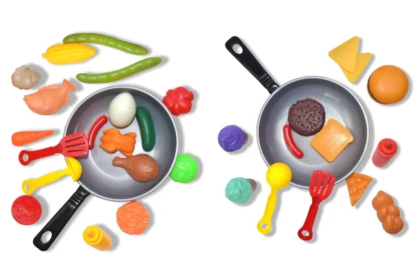 Pienelle kokille! Leikkisetti, jossa on ruokaa ja ruokailuvälineitä - yhteensä 20 osaa, jotka inspiroivat aloittelevaa pientä ruokataiteilijaa.