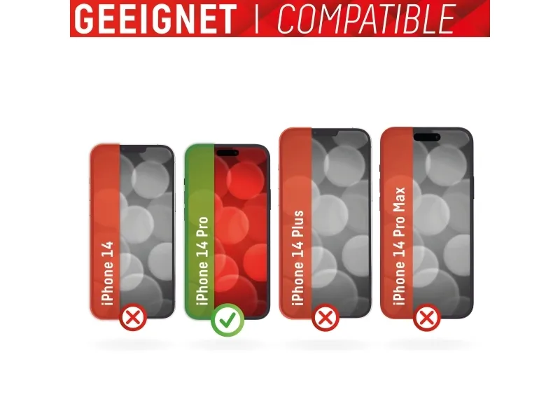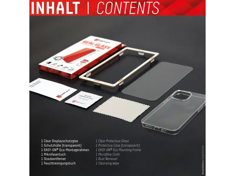Simple & bubble-free application With the EASY-ON® Eco Mounting Frame and the accompanying video tutorials, mounting the tempered glass is incredibly quick, easy and precise. In addition the EASY-ON® Eco Mounting Frame is made of premium solid cardboard and is therefore not only sustainable, but also a 100% recyclable. The result is worth seeing: no crooked positioning of the screen protector on the display, no concealed openings for speakers or microphones and certainly no bubbles under the protective glass.Displex Screen Protector (10H) + Case for Apple iPhone 14 Pro, Eco Mounting Frame, + Case, Tempered Glass, scratch resistant protective film. Brand compatibility: Apple, Compatibility: iPhone 14 Pro. Dry application. Protection features: Impact resistant, Scratch resistant, Dust resistant. Surface finish: Glossy, Material: Tempered glass, Product colour: Transparent. Quantity per pack: 1 pc(s)