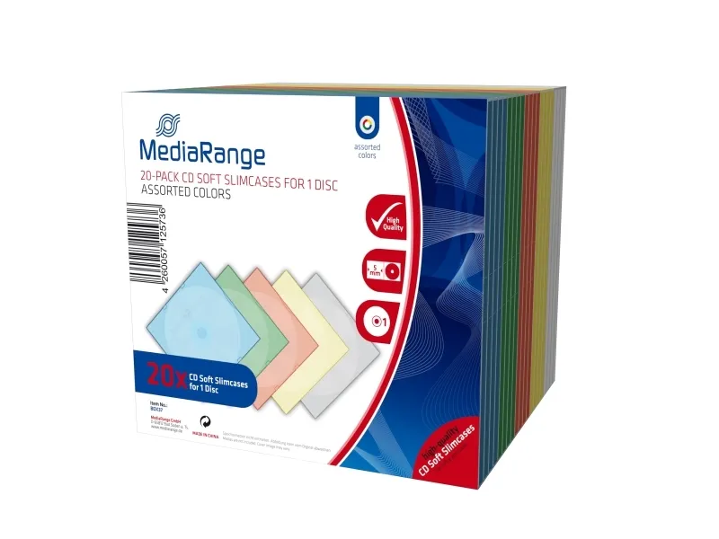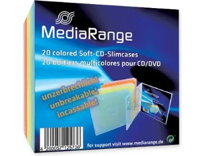 The MediaRange Retail-Pack CD-Soft-Slimcase Color provides an efficient storage solution for your CDs. Designed as a storage CD slim jewel case, it securely fits 1 CD while maintaining a compact profile, perfect for organizing and protecting your media. With a total of 20 pieces packaged in each set, users can manage their collection without taking up much space.
