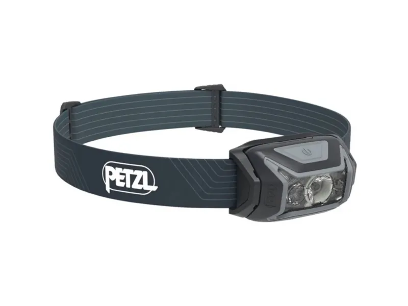 Petzl ACTIK, Taskulamppu otsanauhalla, Harmaa, Painikkeet, IPX4, 1 lamppua, 2 lm