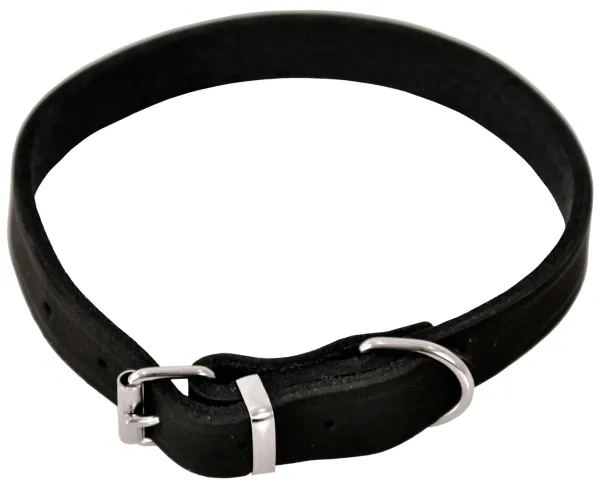 Pehmeä, niitattu nahkakaulus, jossa on säädettävä solki. Korkealaatuinen kasviparkittu nahka, myrkytön. Valmistettu EU:ssa