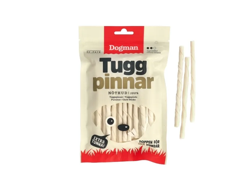 Erittäin ohuet purutikut, jotka on valmistettu korkealaatuisesta raakavuoresta. Täydellinen pienille koirille! Vastaa pureskelun tarpeeseen ja edistää tervettä hammashygieniaa. Valvo aina koiraasi pureskellessasi purukaloja.