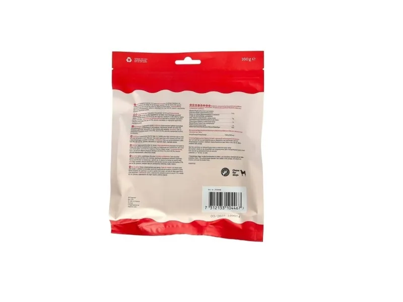 Puristettua pureskelua, jossa on herkkää hirvenlihaa. Sopii nirsoille tai herkille koirille! Viljaton ja gluteeniton eikä lisättyä sokeria. Pidentää pureskeluaikaa, tyydyttää pureskelutarpeet ja edistää suun terveydenhoitoa. Pidä koiraa aina valvonnassa pureskellessasi