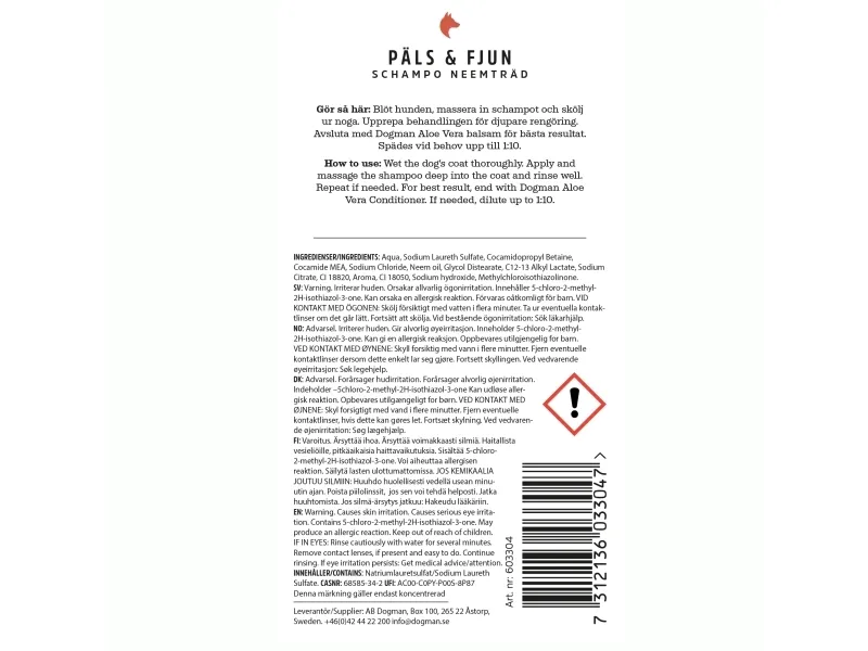 Antibakteerinen ja syväpuhdistava koiran shampoo, jossa on neemipuuöljyä. Tämä shampoo on erittäin mieto syväpuhdistava shampoo, jolla on kosteuttava vaikutus. Sopii erityisesti ärtyneelle ja herkälle iholle.