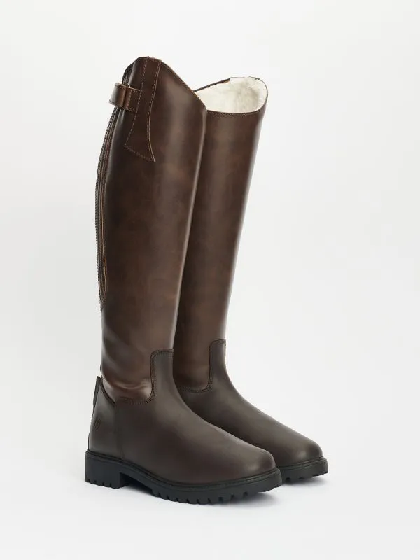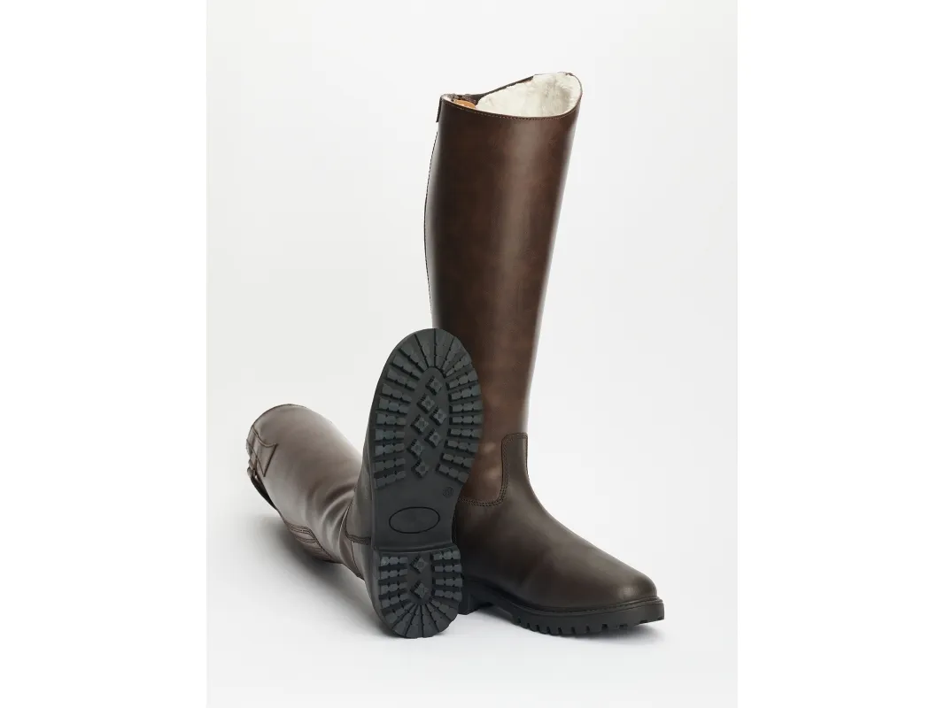 Lämmin ja mukava talviratsastuskenkä synteettisestä nahasta. Piilotettu kuminauha vetoketjun varressa optimaalisen istuvuuden varmistamiseksi. Vuorattu teddyllä. Ulkopohja, jossa on hyvä pito