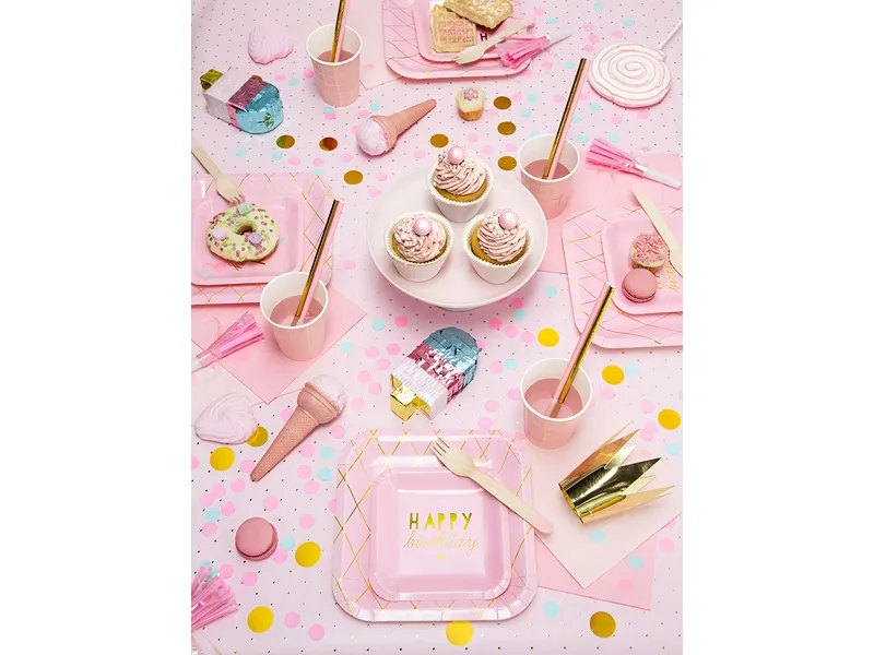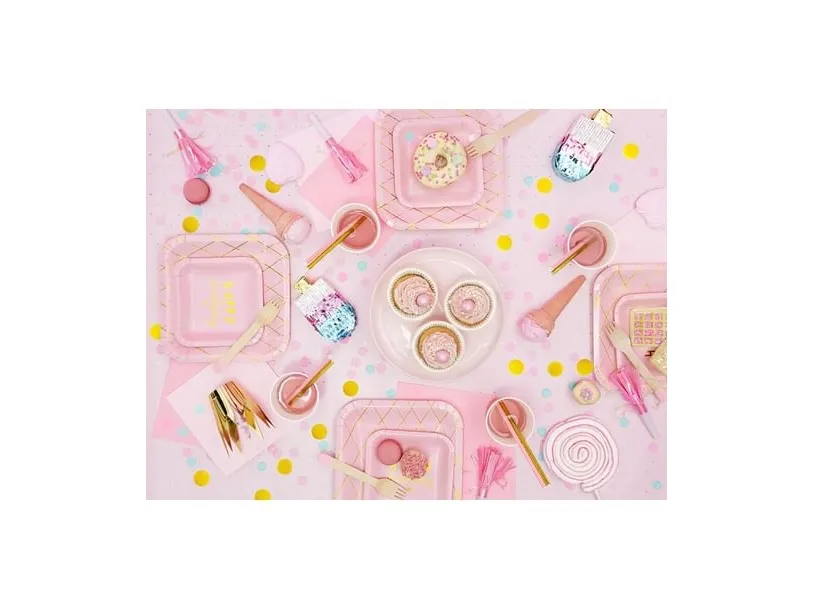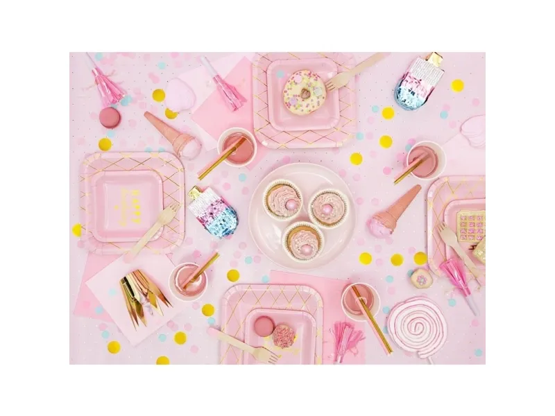 PartyDeco HOR1-081J, Juhlatorvi, Vaaleanpunainen, Valkoinen, 6 kpl, Syntymäpäivä, 125 mm, 140 mm