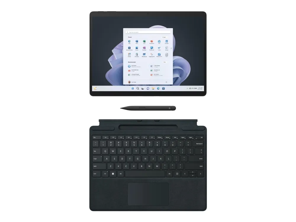 Deploy, manage, and stay secure anywhere Save time and money with streamlined deployment, modern device management and built-in, cloud-powered security.Microsoft Surface Pro 9. Display diagonal: 33 cm (13"), Display resolution: 2880 x 1920 pixels. Internal storage capacity: 256 GB. Processor family: Intel® Core™ i5, Processor model: i5-1245U. Internal memory: 8 GB. Rear camera resolution (numeric): 10 MP, Rear camera type: Single camera, Front camera. Top Wi-Fi standard: Wi-Fi 6E (802.11ax). Weight: 879 g. Operating system installed: Windows 11 Pro. Product colour: Graphite