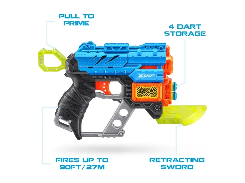 Valmistaudu Dino-hyökkäykseen uudella Extinct Blasterilla, joka tarjoaa äärimmäisen tarkkuuden 27 metrin etäisyydeltä. Sen yhden tikkapiipun ja 4 ylimääräisen tikkavaraston ansiosta sinut lukitaan ja lastataan taisteluun. Käytä Dino-munaasi harjoittelemaan kohteita ja kallista eksklusiivista sisäänvedettävää miekkaa kohdataksesi kovimmatkin dinot.