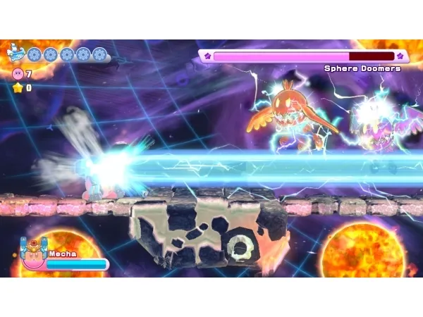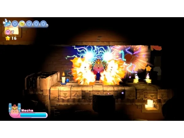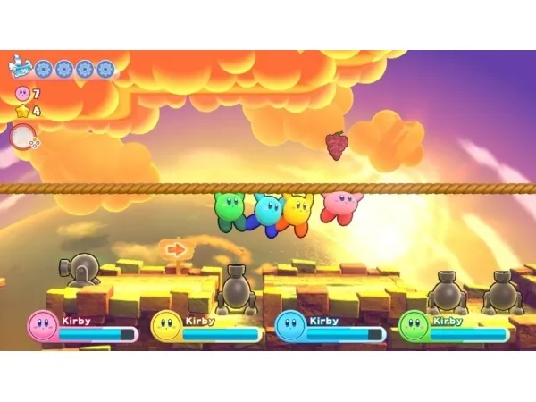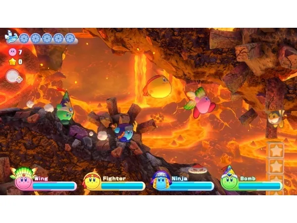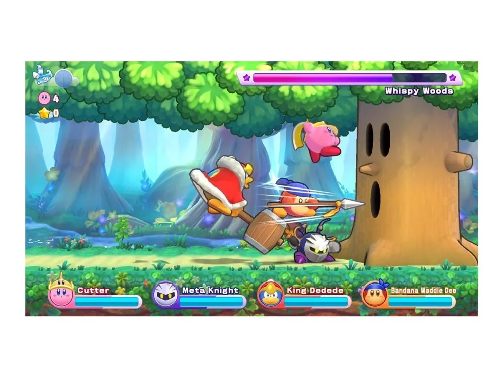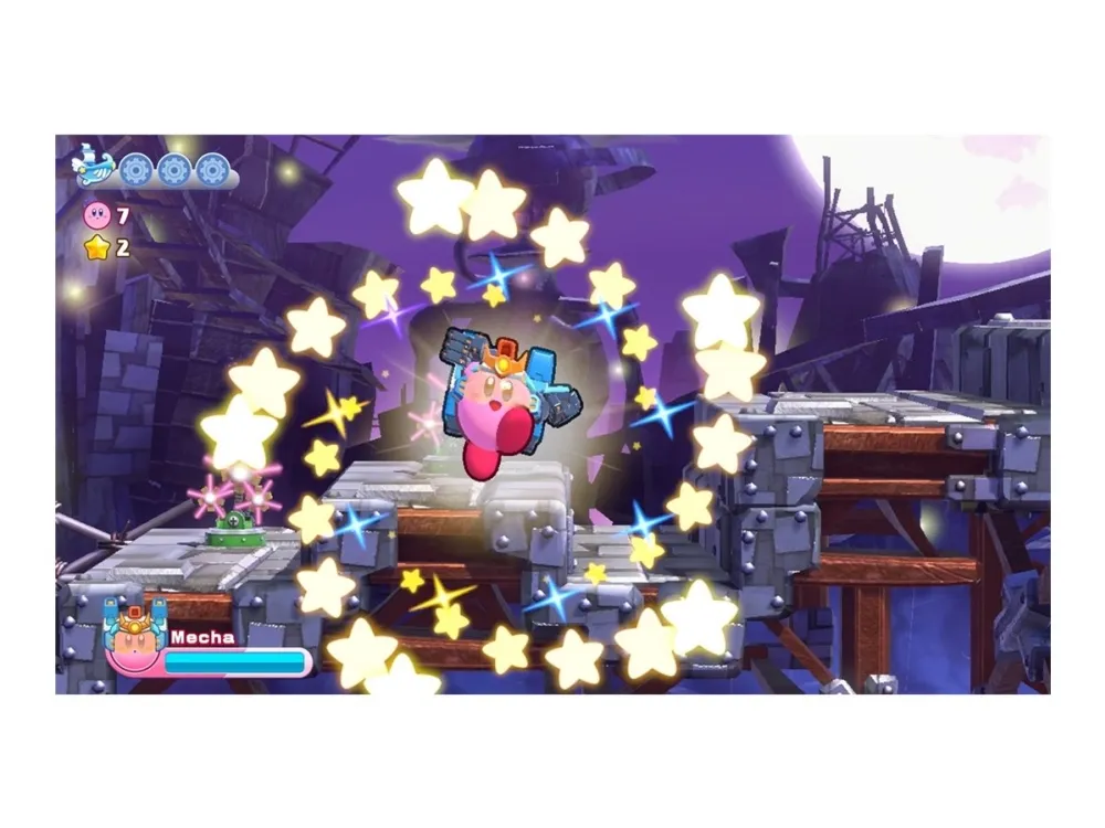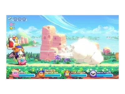 The tough puff Kirby is back for a 1-4 player platforming adventure across Planet Popstar. Help Magolor rebuild his ship with newly added Mecha and Sand Copy Abilities! Float and fight along with friends on the same system as you control Kirby. Each other player can control a different Kirby or one of Kirby's iconic friends like King Dedede, Meta Knight, and Bandana Waddle Dee.