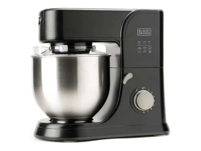 The BLACK+DECKER BXKM1001E mixer offers versatility and performance for a variety of mixing tasks. With a capacity of 5.2 liters, it is designed to accommodate any kitchen need, from whipping cream to kneading dough. This mixer features a tilting head for easy access to the bowl, making it simple to add ingredients or remove mixtures. Additionally, its durable stainless steel bowl looks great and is easy to clean and maintain. Equipped with 8 speed presets and a pulse function, this mixer allows for precise control over mixing tasks, ensuring optimal results whether mixing light batters or heavy doughs. The included accessories such as dough hook, whisk attachment, and beater enhance its functionality, catering to various culinary creations. With non-slip feet for stability during operation, the BLACK+DECKER BXKM1001E mixer makes an excellent addition to any home kitchen.
