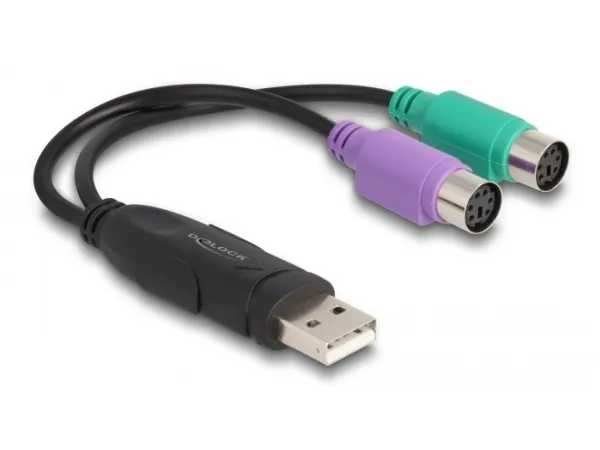 The USB adapter by Delock enables the operation of a PS/2 mouse and a PS/2 keyboard via the USB port on a PC or laptop.