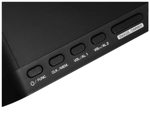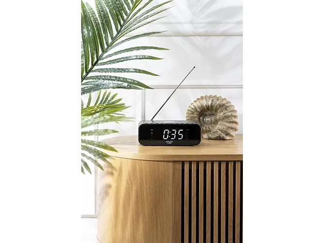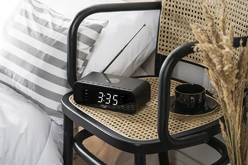 First, you get several devices in one. Next, the design of the alarm clock allows you to put it both in the living room and bedroom. You can adjust its technical features and settings to your personal preferences. For example, you can choose whether you want the radio to wake you up or a traditional alarm sound. You also have the possibility to control the display, i.e. there is an option to influence the brightness level of the displayed time. It is necessary if the light in the room makes it difficult for you to fall asleep. The telescopic antenna ensures proper reception of your favourite stations, even with bad weather outside.